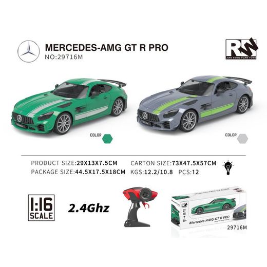 Imagina las calles de tu ciudad transformadas en un circuito de alta velocidad con tu COCHE MERCEDES AMG GT R/C 1:16. Este vehículo no solo captura la esencia de la velocidad, sino que también te ofrece el placer de controlar un coche legendario con apenas un mando a distancia.