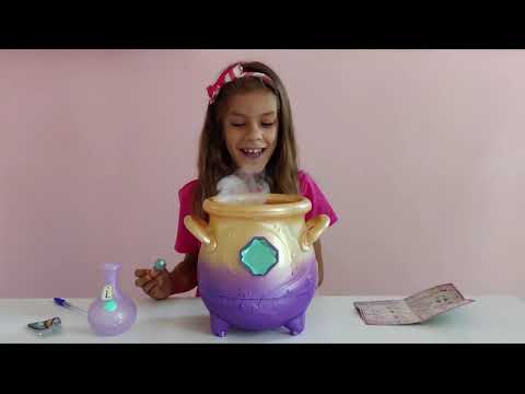 Il peluche Magic Mixie può essere blu o rosa, appare come per magia dal calderone dopo aver versato gli ingredienti della pozione nel calderone